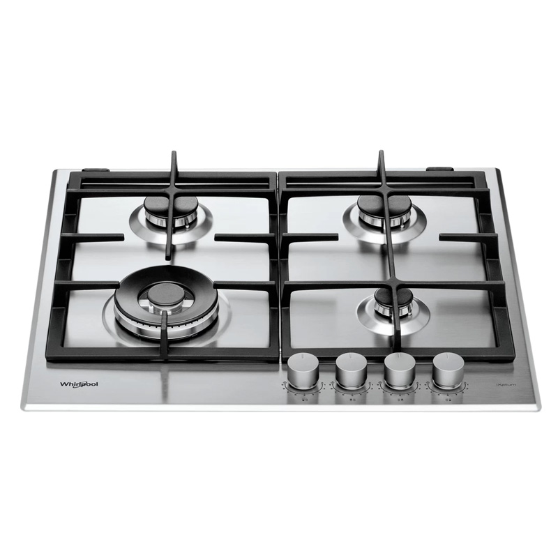 Plaque de Cuisson Encastrable WHIRLPOOL - Type de Plaque: à Gaz - Largeur: 60 cm - Nombre de Feux: 4 Feux - Puissance Brûleurs: 3500 Watts - MultiLevel Flame: 9 niveaux de puissance - Grilles récipients en fonte - Sécurité gaz par Thermocouple - 6ème Sens Sensor - Commandes frontales - Facile à nettoyer - Dimensions: 4.1 x 590 x 510 mm - Couleur: Inox Ixelium - Garantie: 2 ans