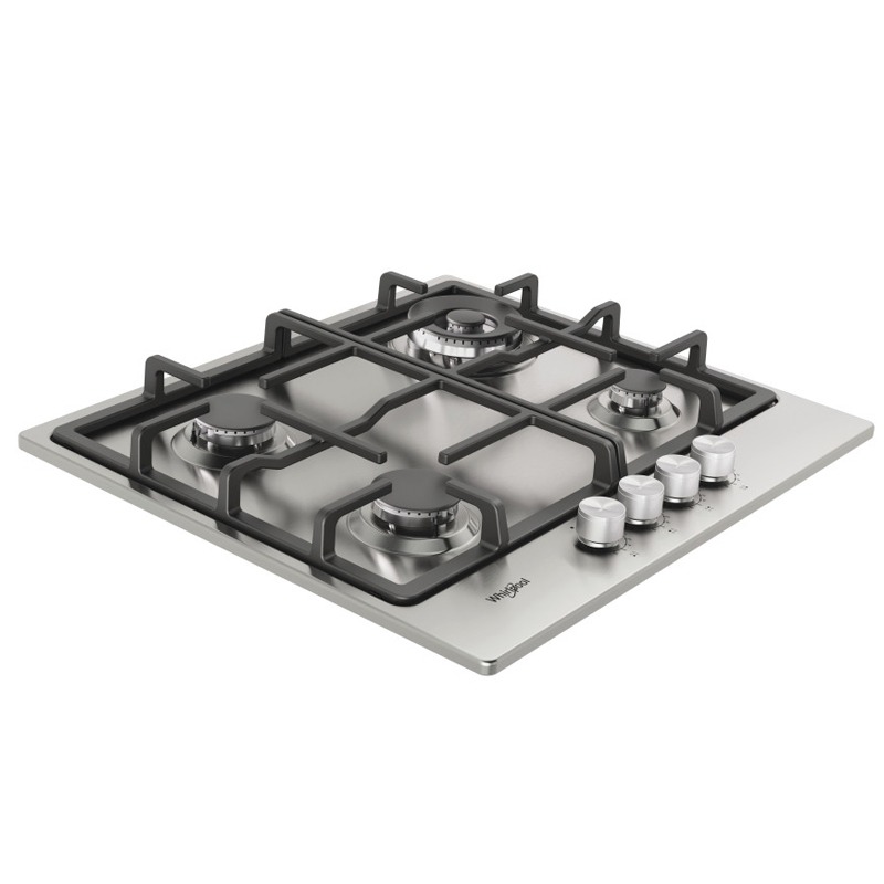 Plaque de Cuisson Encastrable WHIRLPOOL - Type de Plaque: à Gaz - Largeur: 60 cm - Nombre de Feux: 4 Feux - Puissance Brûleurs: 3500 Watts - MultiLevel Flame: 9 niveaux de puissance - Grilles récipients en fonte - Sécurité gaz par Thermocouple - 6ème Sens Sensor - Commandes frontales - Facile à nettoyer - Dimensions: 4.1 x 590 x 510 mm - Couleur: Inox Ixelium - Garantie: 2 ans