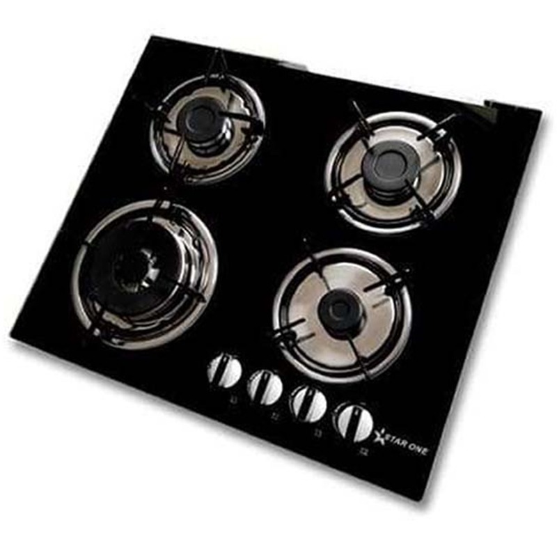 Plaque de Cuisson Encastrable STARONE - Largeur: 60 cm - Type de Plaque: à Gaz - Nombre de Foyers: 4 Foyers - Allumage automatique - Brûleur: Double anneau - Surface de la table de cuisson: Vitro Noir - Design moderne - Couleur: Noir - Garantie: 1 an