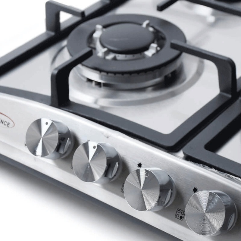 Plaque De Cuisson Encastrable FLORENCE - Type de Plaque: à Gaz - Largeur: 60 cm - Nombre de Foyers: 4 foyers - Grilles: Fonte - Commande Frontale - Allumage automatique - Design moderne - Dimensions: 50 x 58.5 cm - Couleur: Inox - Garantie: 1 an