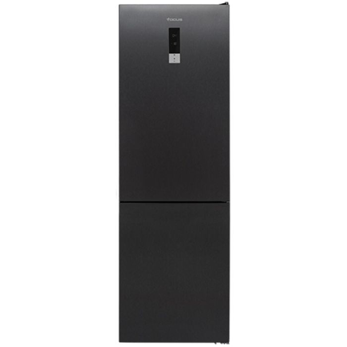 Réfrigérateur Combiné FOCUS - 2 Portes - Système de Refroidissement: No-Frost - Volume brut: 373 Litres - Volume net: 341 Litres - Avec Afficheur - Classe énergétique: A++ - Éclairage: LED - Clayettes en verre - Classe climatique: T/SN - Fonction alarme porte ouverte - Sécurité enfant - Niveau de bruit: 42 dB(A) - Dimensions: 595 x 650 x 1860 mm - Couleur: Dark Inox - Garantie: 2 ans