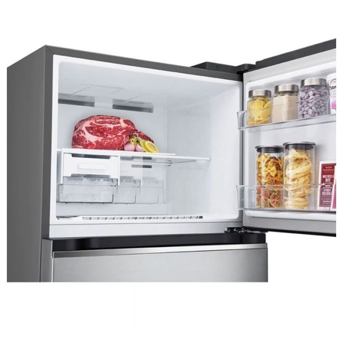 Réfrigérateur LG - 2 portes - Système de refroidissement: NoFrost - Capacité: 340 Litres - Capacité Refrigérateur: 246 Litres - Capacité Congélateur: 79 Litres - Classe énegétique: A+++ - Éclairage LED - Smart Inverter - Diagnostic intelligent - Alarme de porte - R600a - Door Cooling+ - Flux d'air multiple - Désodorisant - Flux d'air multiple - Températures optimales et homogènes - 2 Clayette - 3 Panier de porte - Bac à légume - Casier à œufs - Dimensions: H x L x P: 164 x 60 x 71 cm - Couleur: Inox - Garantie: 3 ans (10 ans sur moteur)