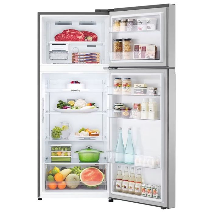 Réfrigérateur LG - 2 portes - Système de refroidissement: NoFrost - Capacité Brut: 410 Litres - Capacité Brut réfrigérateur: 302 Litres - Capacité Brut congélateur: 108 Litres - Capacité Net: 375 Litres - Capacité Net réfrigérateur: 285 Litres - Capacité Net congélateur: 90 Litres - Éclairage LED - Smart Inverter - Diagnostic intelligent - Door Cooling+ - LinearCooling™ - R600a - Multi-Air Flow - Flux d'air multiple - Désodorisant - Alarme porte ouverte - Températures optimales - Étagère Verre trempé - Bac à légume - Zone fraiche - Dimensions: H x L x P: 172 x 68 x 70 cm - Couleur: Silver - Garantie: 3 ans (10 ans sur moteur)